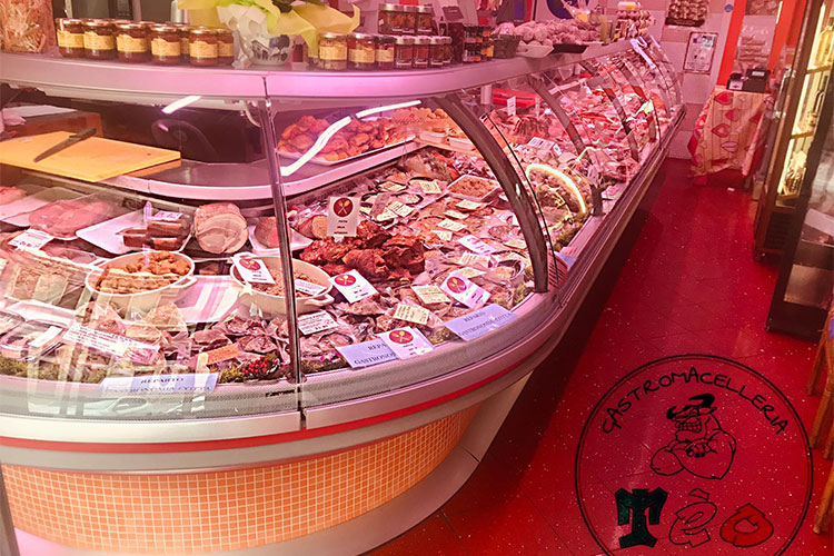 Quando entrate nella Gastromacelleria Teo la prima cosa che salta agli occhi è l’ampio bancone frigo profondo ed alto che dalla forma a semicerchio propone succulente pietanze a base di carne e contorni o tagli allettanti di vari parti bovine e suine come ad esempio lombate, filetti e hamburger.